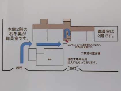 入学届を鷹峯小学校の職員室(本館2階)までお持ちください。お手続きいたします。