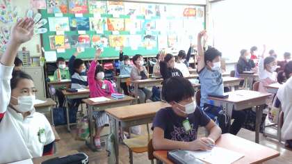 この日の給食の時間では「おいしかった」ではなく「○○していておいしかった。」と具体的に伝える姿がたくさん見られました。