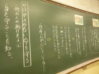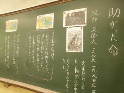 阪神・淡路大震災に遭遇した一家の行動から、命について考えました。かけがえのない命を守るために、どのような行動をするのか。どのような気持ちでいるのかを主人公の立場で考えました。
