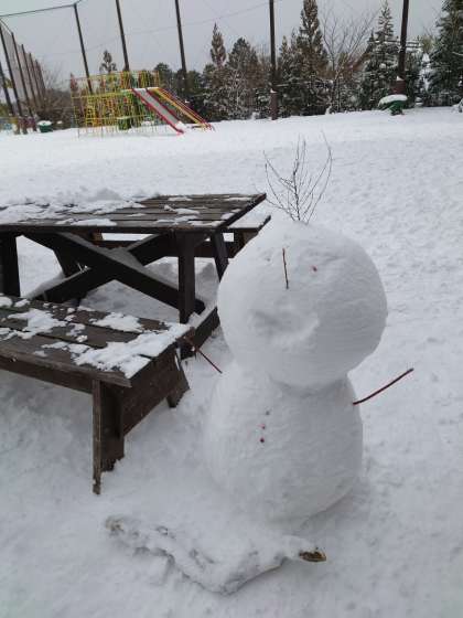 雪遊びをしていた4年生がかわいらしい雪だるまを作っていました。
