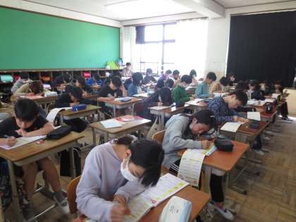5年生は国語の学習で自分の意見をノートに書いていました。