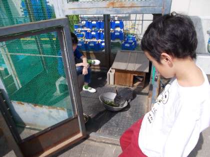 ウサギのチョコちゃんに好物のクローバーをあげました。