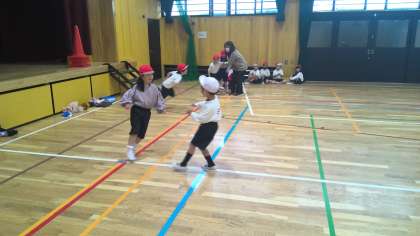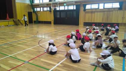 1年生は体育の学習をしています。