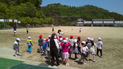 1年生が中間休みに、おにごっこをして楽しんでいました。