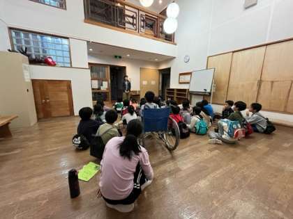 明日、雨の影響で予定が変更になることを子どもたちに伝えました。