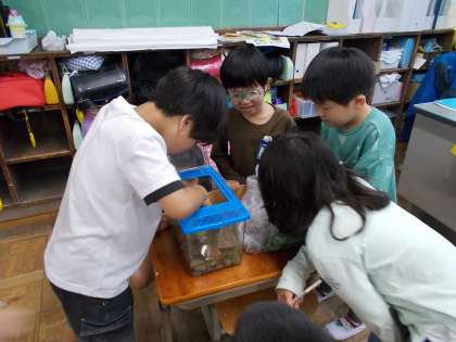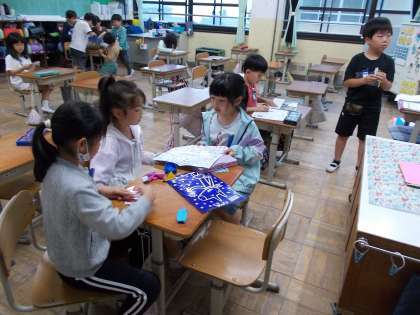 今日は外で遊べません。ザリガニの世話や折り紙で遊んでいました。