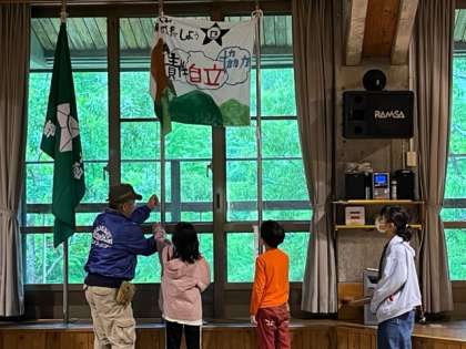 3日間鷹峯小学校の活動を見守っていた旗を降ろしました。
