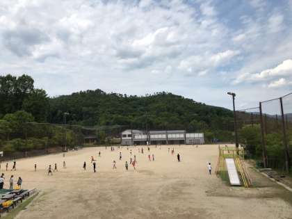 運動場・教室・講堂に分かれてフレンドリーグループで遊んでいました。