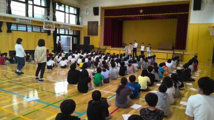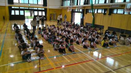 校歌をみんなで歌い、校長先生のお話を聞きました。