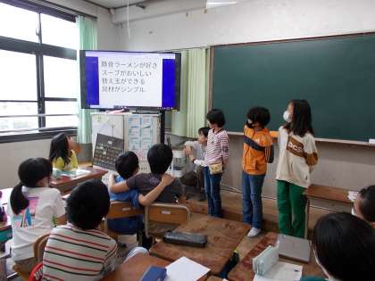 先生へのインタビューを班でまとめて報告しています。