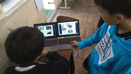 総合的な学習の時間は自分たちの町について調べます。今回は自分たちが知っていることでプレゼンを作り、友達と交流しました。友だちからの質問を受けて、もっと知りたいことが出てきたようです。