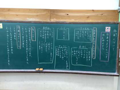 食べ物・服・あそびなどの日本のものをiPadで調べ、そこから日本の良さを考えていきました。日本には、昔から続くものがたくさんあることに気づけました。