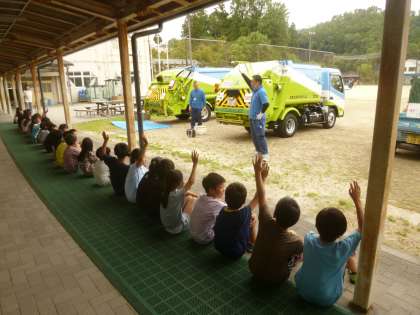 今日は京都エコマチステーションの方々が来校され、食品ロスのお話やパッカー車による積み込み体験をさせていただきました。見たことはあるけれどやったことがない体験だったので、子ども達は目を輝かせて2時間活動しました。ごみの削減が自分たちの生活を豊かにするものだということを学習することができました。