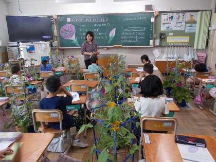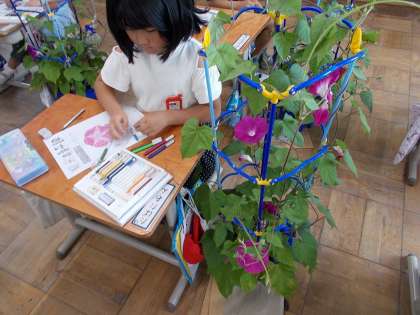 アサガオの花の観察をしていました。