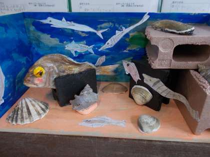 算数の授業の様子です。10より大きい数の学習をしていました。教室には夏休みの作品が展示されています。