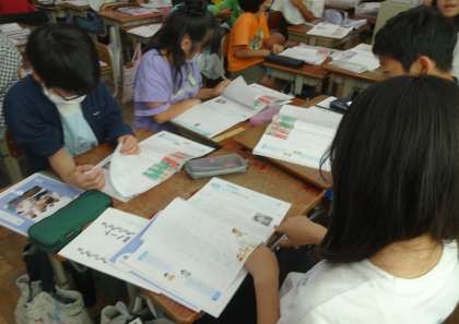ペルーでバレーボールを教えた日本人監督のお話をもとに、「国際親善」について話し合い、考えました。