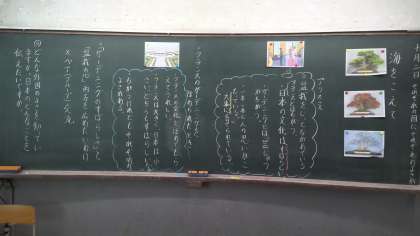 海外の文化と日本の文化の違いはあるけれど、どちらもすばらしい文化であり、それを伝えていこうとする心について考えました。日本の「盆栽」と外国の「ガーデニング」を題材にして物語をもとに登場人物の気持ちをペアで考えたり、日本の文化の良い所を出しあったりして楽しく学習することができました。