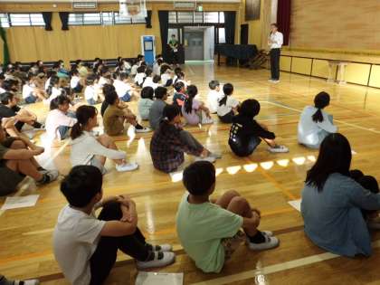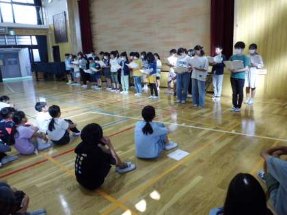 続いて児童会の各委員会の連絡と魚投げ大会の表彰をしていました。