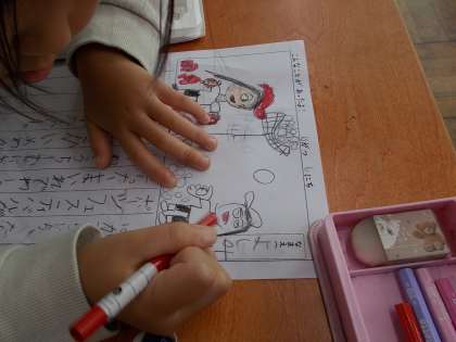 スポーツフェステイバルでがんばった50メートル走やダンス、玉入れを絵日記に書いていました。