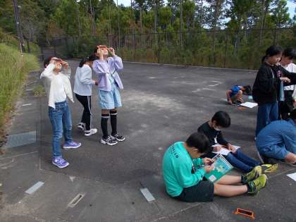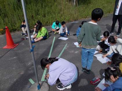 理科の授業で、遮光版を使って太陽と影の観察をしています。