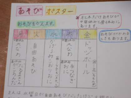 3年生の教室では、遊び係がみんなに伝えるポスターを作っていました。