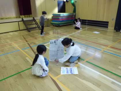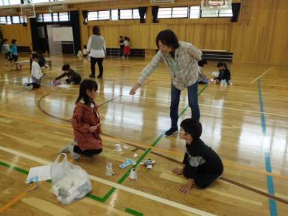 2年生が作ってくれた遊びで、楽しく交流をしていました。