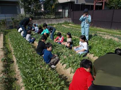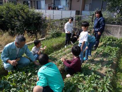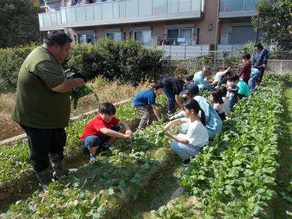 北部農業センターと保護者の方に来ていただいて、大根の間引きを行いました。