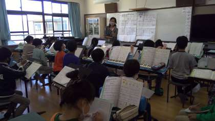 5年生は音楽の学習をしていました。