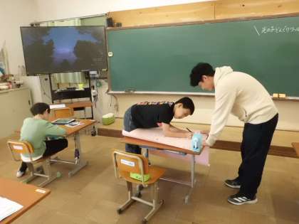 光の子学級では、大きな紙に文章を書いたり素敵な絵を描いたりしていました。