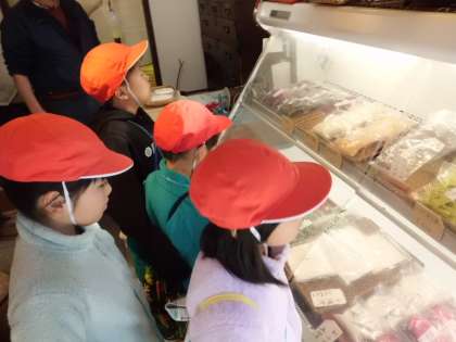 2年生が、町探検に行きました。漬物屋「長八」さんに行き、聞きたいことを、積極的に質問をしていました。