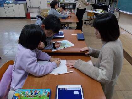 国語「お話リレー」の授業の様子です。