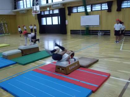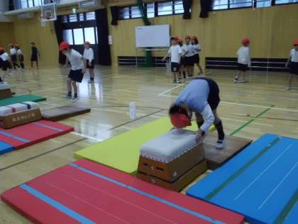 2年生が、体育の学習で跳び箱をしていました。