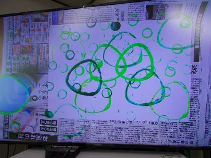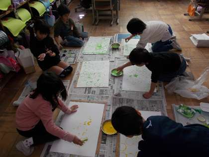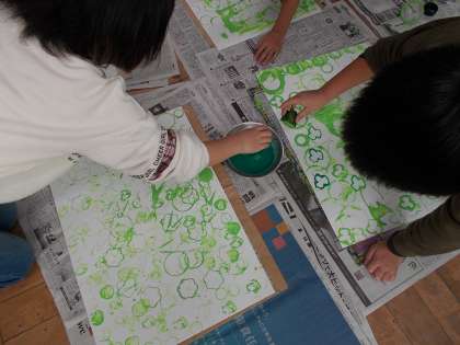 図工の授業で、切った野菜などいろいろな形のスタンプで絵を作っていました。