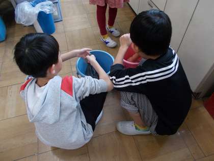 寒い冬はぞうきんをしぼる水も冷たいですが頑張ってくれています。教室をきれいにしてくれてありがとう!