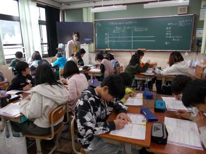 音楽の授業で、小学生生活の一番の思い出を思い起こしながら、「思い出のメロディー」の曲を聴いていました。