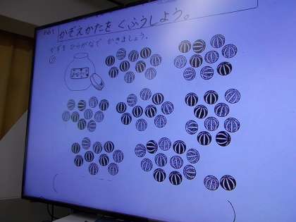 算数の授業で、パッと見て数を数えるしかたについて学んでいました。