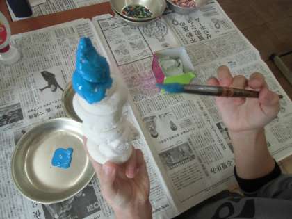 図工の学習の様子です。粘土に色を混ぜ込んだり、塗ったりしました。