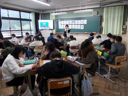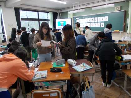 外国語で、なりたい職業を伝え合う授業の様子です。