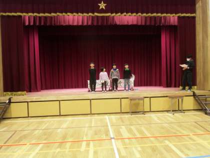 講堂で学習発表会の練習をしました。いよいよ来週本番です。体調を整えて挑みたいですね。