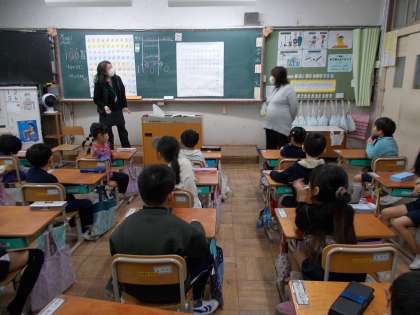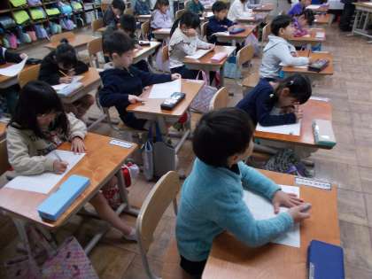算数の授業で、100までの数字の表を作って、そのきまりについて考えていました。