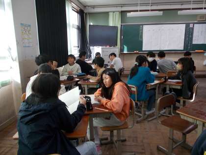 国語の授業で、鴻上尚史の『大切な人と深くつながるために』を読んで、社会と生き方についてグループで話し合っていました。