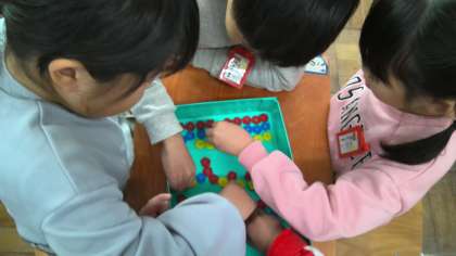 100の数をどうやって数えると分かりやすいか考えている様子です。