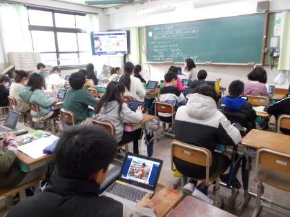 社会の授業で「情報を生かす産業」についての学習をしていました。
