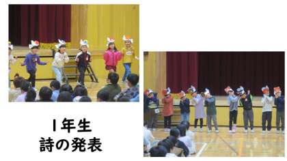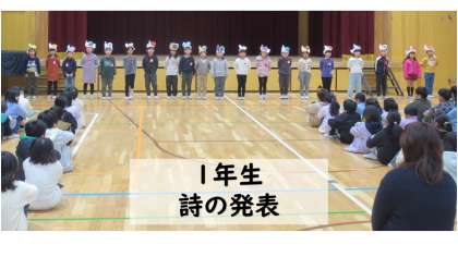 2月の朝会では、校長先生からのお話、1年生の詩の発表、委員会からのお知らせがありました。