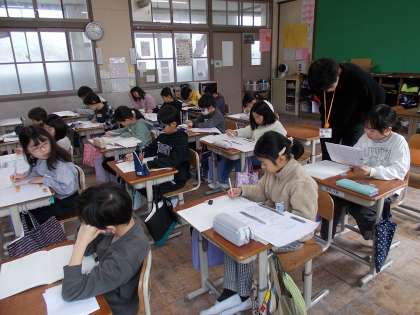 国語の授業の様子です。『ありの行列』で書かれていることを、短い文章にまとめる学習をしていました。