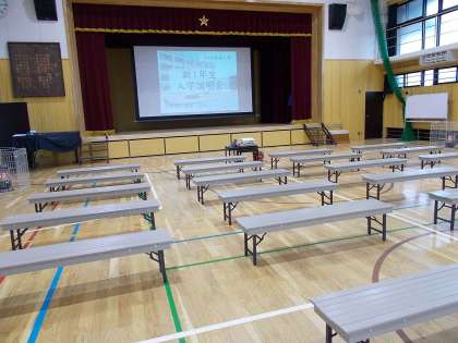 今日は半日入学・入学説明会がありました。新1年生の保護者の皆様、ご来校いただきありがとうございました。