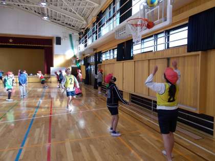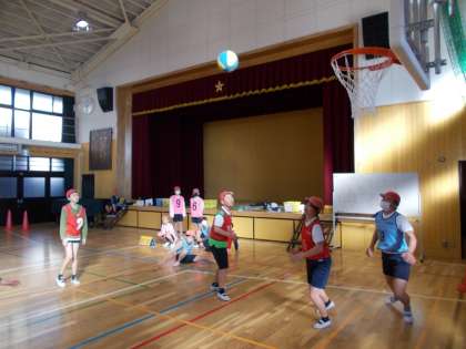 体育の授業で、バスケットボールをしていました。
