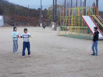 昼休みの様子です。4年生はバトミントンで楽しそうに遊んでいました。