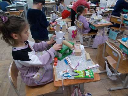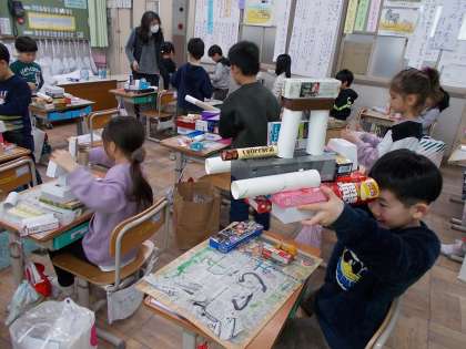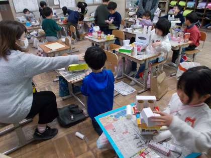 図工の授業『はこで作る』の様子です。