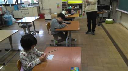 給食週間の取り組みとして、今日は給食調理員さんが給食を作っておられる姿を映した動画を見ました。魚を一度にたくさん焼けるようにきれいに並べておられるところや、たくさんの食器や食缶を手際よく洗っている姿を見て、毎日給食を作る大変さや凄さに気づいたようです。それぞれが感じた感謝の気持ちをカードに丁寧に書きました。